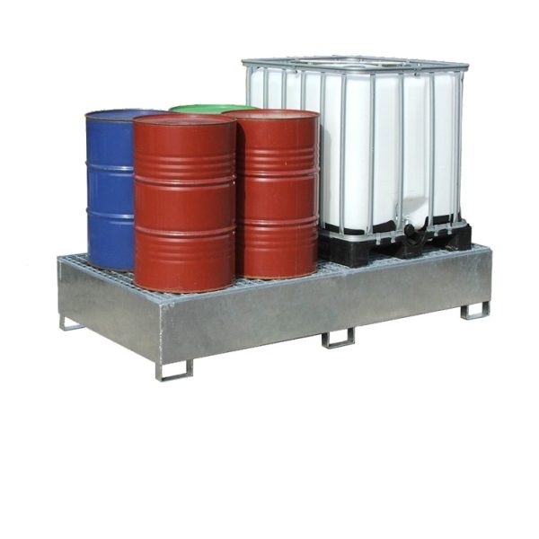 Optez pour la sécurité et la performance avec le bac de rétention cubique 2 cubitainers/8 fûts galvanisé d’ASTA Equipement